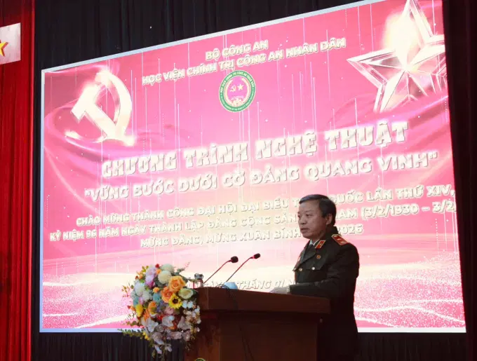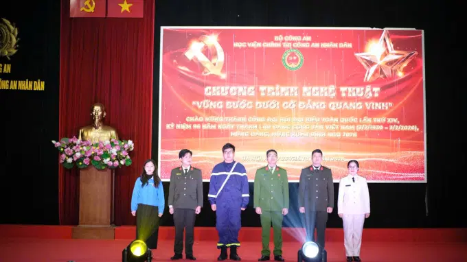 Trong niềm hân hoan vui mừng của Nhân dân cả nước chào mừng thành công Đại hội đại biểu toàn quốc lần thứ XIV của Đảng; hòa chung không khí thi đua sôi nổi mừng Đảng quang vinh – mừng Xuân Bính Ngọ 2026; hướng tới kỷ niệm 96 năm Ngày thành lập Đảng Cộng sản Việt Nam, tối ngày 26/01/2026, Học viện Chính trị CAND tổ chức chương trình nghệ thuật với chủ đề “Vững bước dưới cờ Đảng quang vinh”. Dự và chỉ đạo chương trình có Trung tướng, PGS.TS, NGƯT Phan Xuân Tuy, Bí thư Đảng ủy, Giám đốc Học viện. Tham dự chương trình có các đồng chí trong Ban Thường vụ Đảng ủy, Ban Giám đốc Học viện; các đồng chí trong Đảng ủy, Ủy ban kiểm tra Đảng ủy Học viện; cấp ủy, lãnh đạo các đơn vị, Ban Chấp hành các tổ chức quần chúng, và toàn thể các đồng chí cán bộ, giảng viên, nhân viên và học viên Học viện.