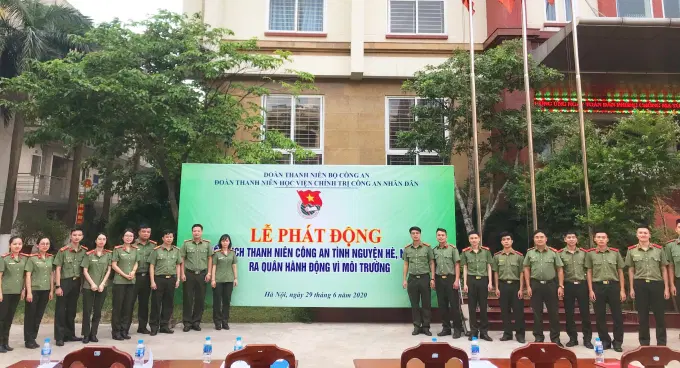 Hưởng ứng Chương trình “Ngày thứ 7 tình nguyện”, “Ngày Chủ nhật xanh” của Đoàn Thanh niên Bộ Công an, ngày 29/6/202, Đoàn Thanh niên Học viện Chính trị CAND đã tổ chức lễ phát động “Chiến dịch Thanh niên Công an tình nguyện Hè năm 2020 và Ra quân hành động vì môi trường” với nhiều hoạt động cụ thể, thiết thực nhằm góp phần xây dựng môi trường cảnh quan Học viện “Xanh - Sạch - Đẹp” , đồng thời tuyên truyền, giáo dục, nâng cao ý thức bảo vệ môi trường, phát huy tính chủ động, xung kích, tinh thần đoàn kết cùng chung tay phòng ngừa, đẩy lùi dịch bệnh. Thông qua đó thể hiện vai trò xung kích của tuổi trẻ đoàn viên, thanh niên Học viện.