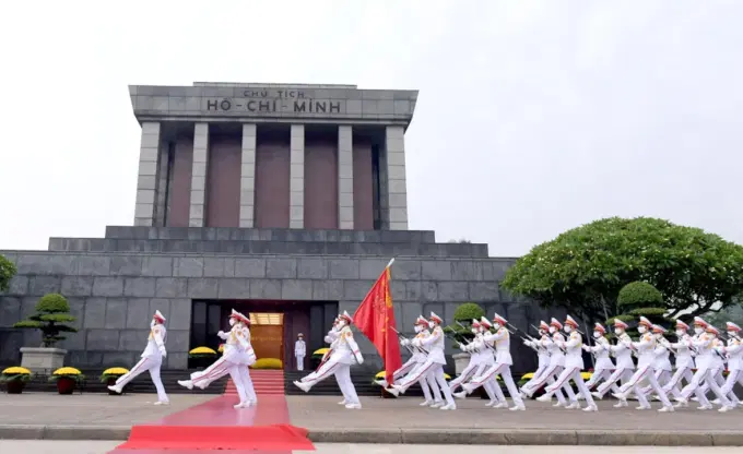 Lễ chào cờ diễn ra nghiêm trang trên Quảng trường Ba Đình lịch sử.