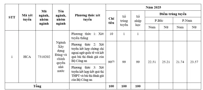 (3) Chỉ tiêu được giao ban đầu theo Phương thức 2,3 năm 2025 là 90, được điều chỉnh sau khi không tuyển đủ chỉ tiêu Phương thức 1 (điều chỉnh thành 99 chỉ tiêu).