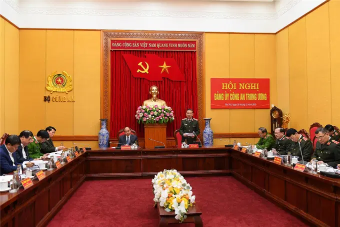 Thủ tướng Nguyễn Xuân Phúc đến dự và phát biểu chỉ đạo tại Hội nghị Đảng ủy Công an Trung ương