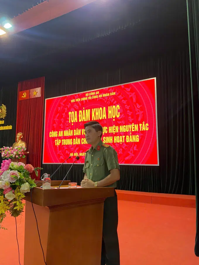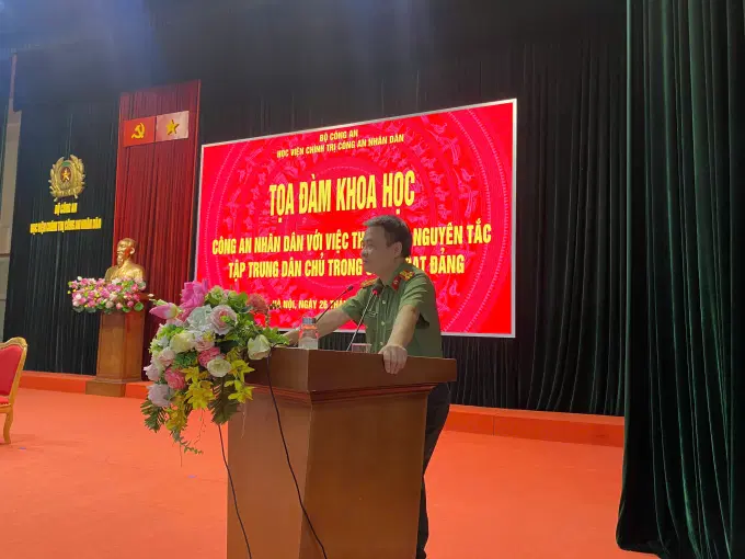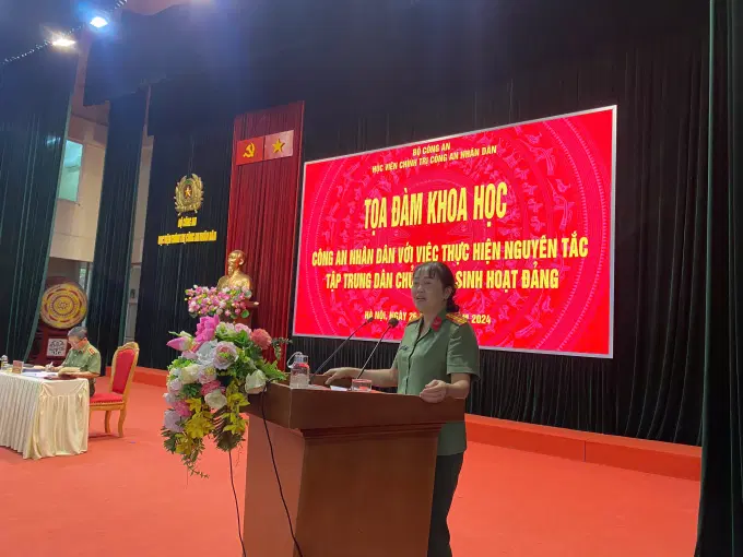 Nhằm làm rõ cơ sở lý luận, thực tiễn và đề xuất phương hướng, giải pháp hoàn thiện các cơ chế thực thi nguyên tắc tập trung dân chủ của Đảng trong tình hình mới; gắn với mục tiêu nâng cao chất lượng giảng dạy, nghiên cứu khoa học của cán bộ, giảng viên và góp phần hoàn thiện hệ thống giáo trình, tài liệu giảng dạy của Học viện; thực hiện chương trình công tác trọng tâm và kế hoạch hoạt động nghiên cứu khoa học năm học 2024-2025 của Học viện, chiều ngày 26/9/2024, Học viện Chính trị CAND tổ chức Tọa đàm khoa học, với chủ đề: Công an nhân dân với việc thực hiện nguyên tắc tập trung dân chủ trong sinh hoạt Đảng.