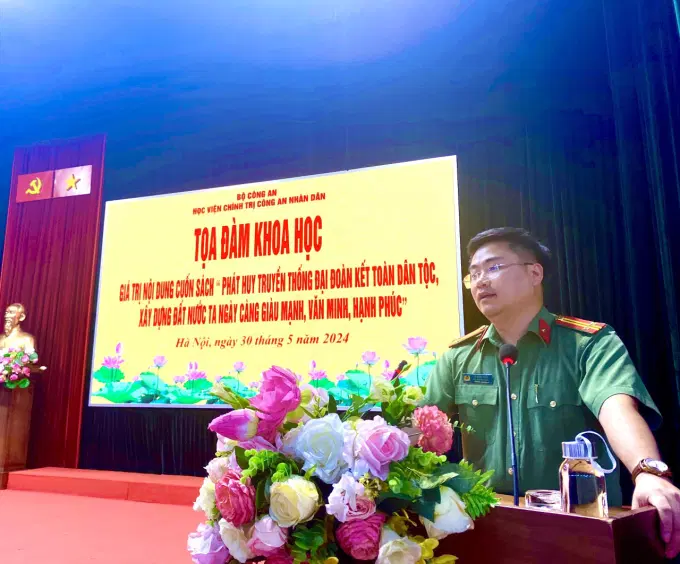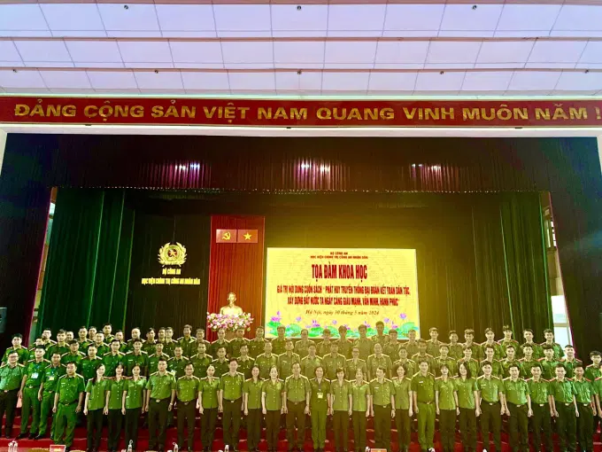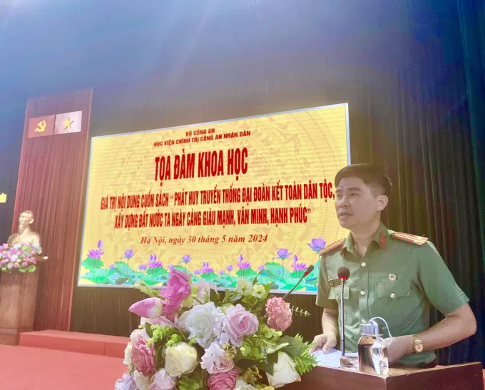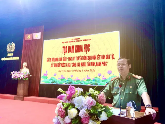 Thực hiện chương trình Kế hoạch, chương trình công tác nghiên cứu khoa học năm học 2023 - 2024 của Học viện Chính trị Công an nhân dân, chiều ngày 30/5/2024, tại Hội trường trung tâm, Học viện Chính trị Công an nhân dân đã tổ chức Tọa đàm khoa học cấp Học viện Giá trị nội dung cuốn sách “Phát huy truyền thống đại đoàn kết toàn dân tộc, xây dựng đất nước ta ngày càng giàu mạnh, văn minh, hạnh phúc” của Tổng Bí thư Nguyễn Phú Trọng.