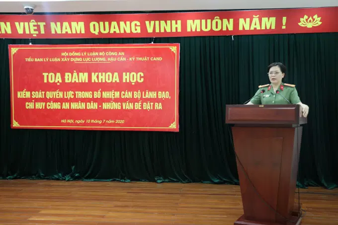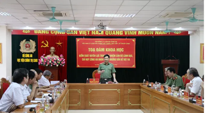 Tại buổi Tọa đàm, các đại biểu đã thảo luận, làm rõ nhận thức cơ bản về kiểm soát quyền lực trong công tác cán bộ nói chung, trong bổ nhiệm cán bộ lãnh đạo, chỉ huy Công an nhân dân nói riêng; đánh giá thực trạng, kết quả đạt được, những hạn chế, vướng mắc của việc kiểm soát quyền lực trong bổ nhiệm cán bộ lãnh đạo, chỉ huy Công an nhân dân; dự báo những yếu tố tác động đến vấn đề trên và đề xuất giải pháp nâng cao hiệu quả kiểm soát quyền lực trong bổ nhiệm cán bộ lãnh đạo, chỉ huy Công an nhân dân trong thời gian tới.