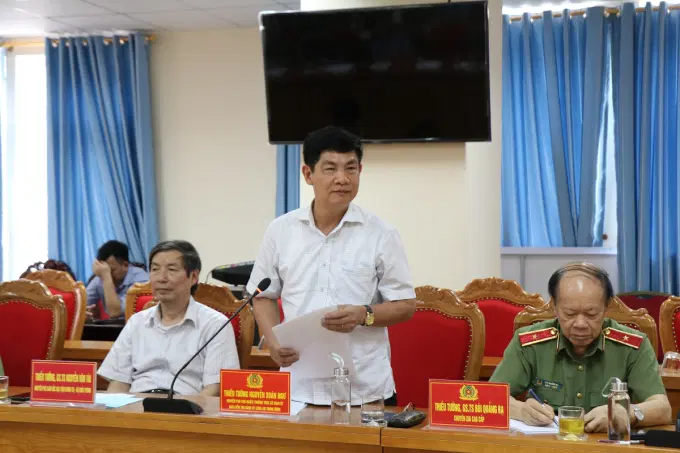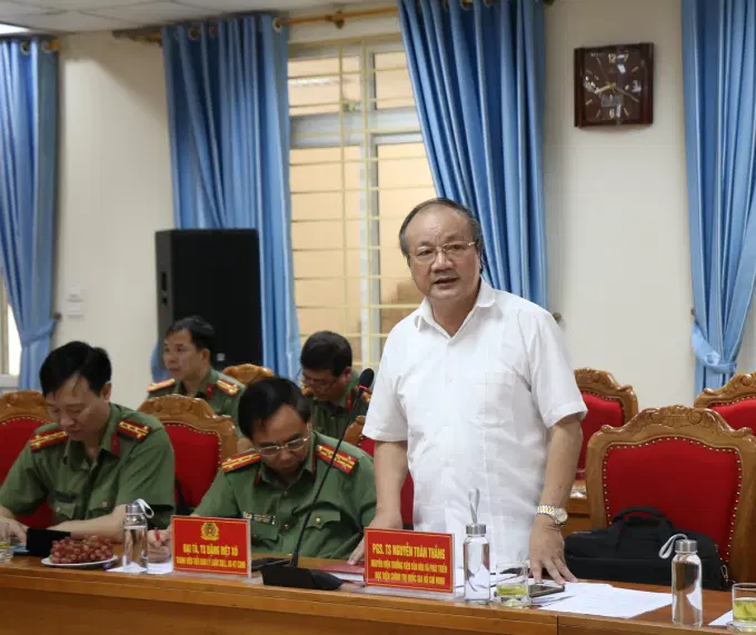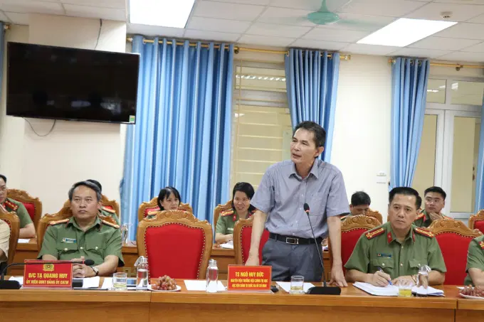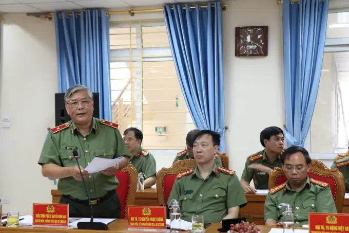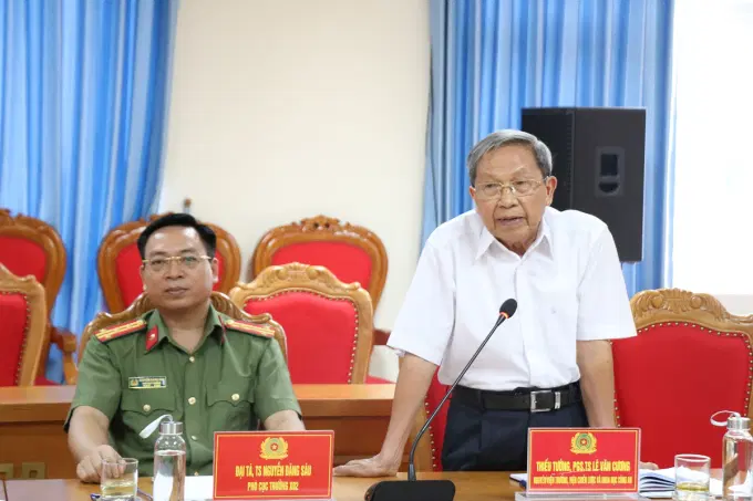 Đồng chí Thiếu tướng, PGS.TS Lê Văn Cương, nguyên Viện trưởng Viện Chiến lược và Khoa học công an phát biểu