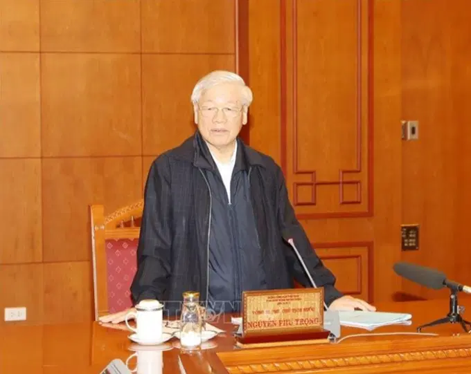 Tổng Bí thư, Chủ tịch nước Nguyễn Phú Trọng, Trưởng Tiểu ban Nhân sự Đại hội XIII của Đảng phát biểu chỉ đạo cuộc họp. Ảnh: Trí Dũng/TTXVN