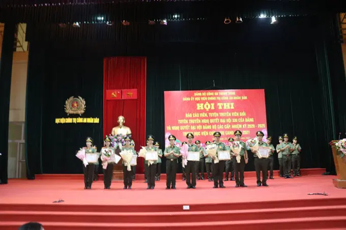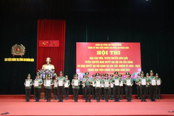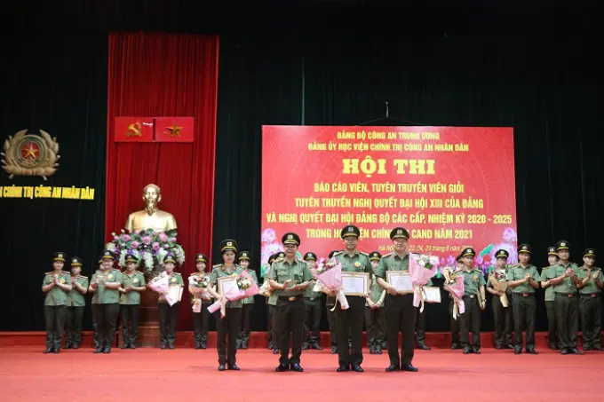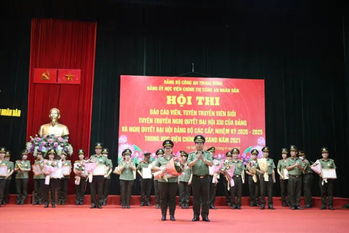Ngày 29/6/2021, Học viện Chính trị Công an nhân dân tổ chức tổng kết trao giải Hội thi “Báo cáo viên, Tuyên truyền viên giỏi tuyên truyền Nghị quyết XIII của Đảng và nghị quyết đại hội đại biểu đảng bộ các cấp, nhiệm kỳ 2020- 2025 trong Học viện Chính trị Công an nhân dân, năm 2021”. Đồng chí Trung tướng, PGS.TS Trần Vi Dân, Giám đốc Học viện Chính trị Công an nhân dân chủ trì buổi lễ. Tham dự buổi lễ có các đồng chí: Thiếu tướng, PGS.TS Đinh Ngọc Hoa, Phó Giám đốc Học viện Chính trị Công an nhân dân; Thiếu tướng, TS Nguyễn Như Lôi, Phó Giám đốc Học viện Chính trị Công an nhân dân; các chuyên gia cao cấp, đại diện lãnh đạo các đơn vị chức năng thuộc Học viện, các thí sinh tham gia Hội thi và toàn thể cán bộ, giảng viên của Học viện.