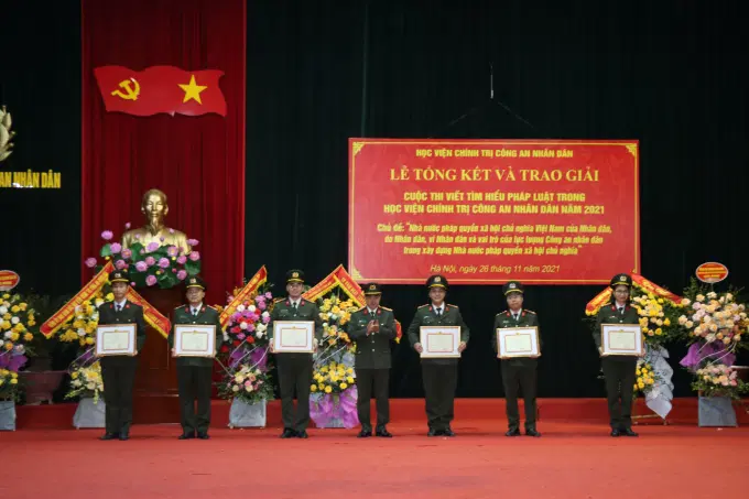 Chiều ngày 26/11/2021, Học viện Chính trị Công an nhân dân (CAND) đã tổ chức tổng kết và trao giải Cuộc thi viết “Tìm hiểu pháp luật trong Học viện Chính trị Công an nhân dân” năm 2021. Tham dự và chỉ đạo buổi lễ có đồng chí Đại tá, TS Tống Văn Khuông, Ủy viên Ban Thường vụ Đảng ủy, Phó Giám đốc Học viện; đại diện lãnh đạo các đơn vị chức năng thuộc Học viện cùng toàn thể thí sinh tham dự cuộc thi.