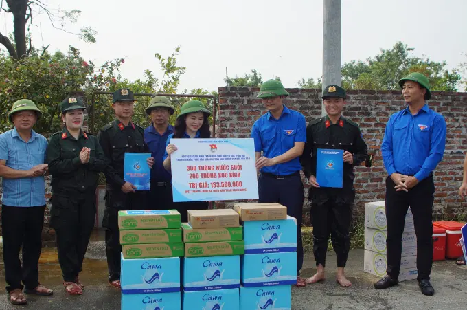 Chiều cùng ngày, cán bộ, học viên Học viện cùng các thanh niên tình nguyện vui mừng đón đồng chí Bùi Quang Huy, Uỷ viên dự khuyết TW Đảng, Bí thư thứ nhất TW Đoàn; đồng chí Chu Hồng Minh, Uỷ viên Ban Ban Thường vụ Trung ương Đoàn, Thành uỷ viên, Bí thư Thành đoàn Hà Nội; đồng chí Trần Nam Hà, Phó Bí thư Thường trực, Chủ tịch HĐND huyện Sóc Sơn; đồng chí Nguyễn Minh Tuấn, Huyện uỷ viên, Bí thư huyện Đoàn Sóc sơn; Đại diện Đảng uỷ, UBND xã Thanh Xuân đến thăm hỏi, động viên và trao tặng các đơn vị ra quân giúp đỡ nhân dân khắc phục hậu quả lũ lụt của cơn bão số 3 với 300 thùng sữa, 200 thùng xúc xích trị giá hơn 133.500.000 VND.
