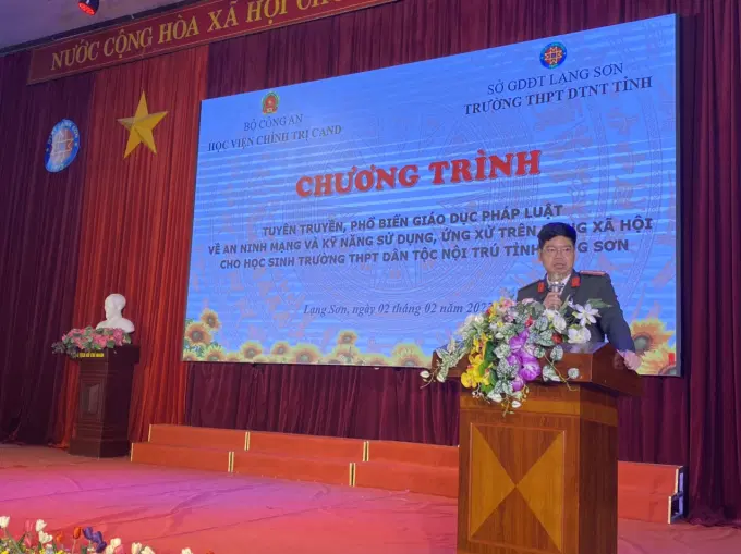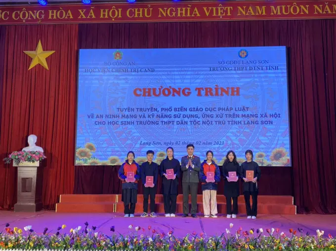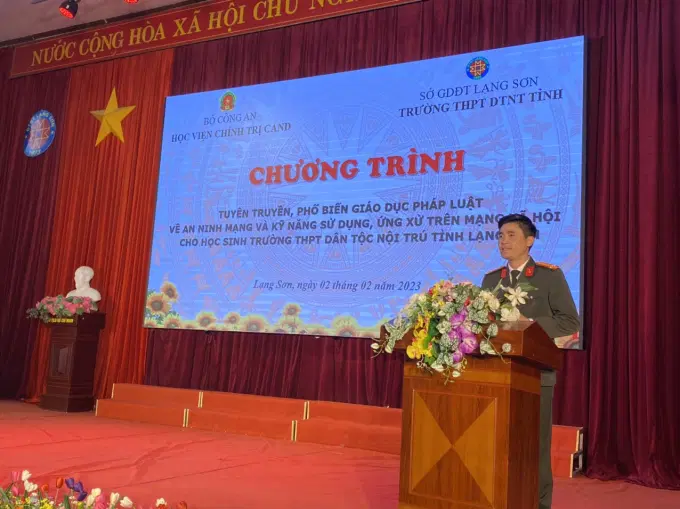 Ngày 02/02/2023, Học viện Chính trị Công an nhân dân (CAND) tổ chức tổ chức buổi “Tuyên truyền, phổ biến giáo dục pháp luật về an ninh mạng và kỹ năng sử dụng, ứng xử trên mạng xã hội” tại Trường Trung học phổ thông Dân tộc nội trú tỉnh Lạng Sơn (Trường THPT DTNT tỉnh Lạng Sơn). Đây là việc làm ý nghĩa, nhằm giúp học sinh năm được những quy định của pháp luật về an ninh mạng và trang bị những kỹ năng cần thiết trong việc sử dụng, ứng xử trên mạng xã hội; đồng thời, giúp các em được vui chơi và sống trong môi trường mạng xã hội an toàn, lành mạnh.