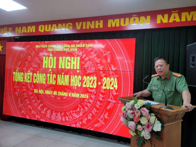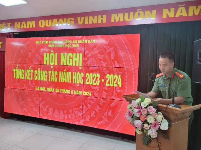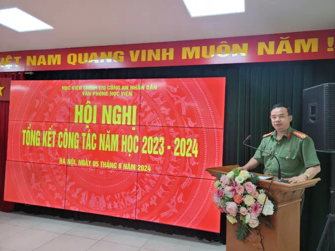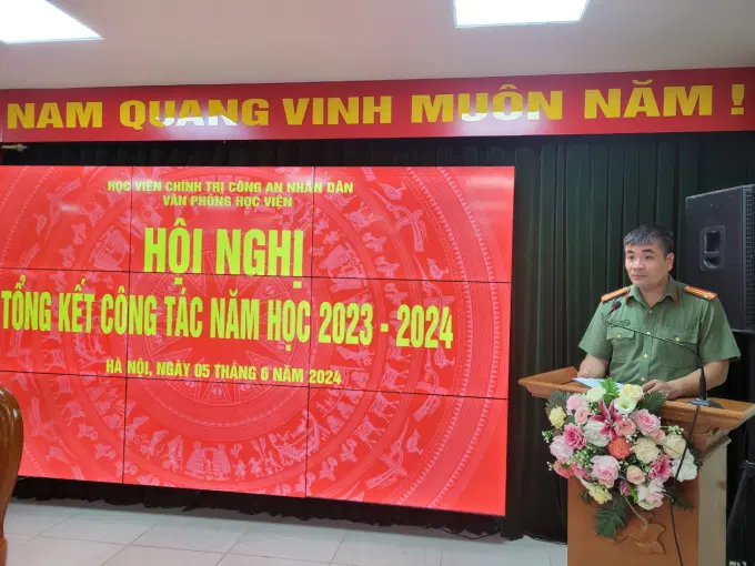 Sáng ngày 05/6/2024, Văn phòng Học viện tổ chức Hội nghị tổng kết công tác năm học 2023 - 2024 và phương hướng, nhiệm vụ công tác năm học 2024 - 2025. Đồng chí Đại tá, TS Tống Văn Khuông, Ủy viên Ban Thường vụ Đảng ủy, Phó Giám đốc Học viện dự và chỉ đạo Hội nghị; đồng chí Trung tá, TS Hoàng Huy Thành, Ủy viên Ban chấp hành Đảng bộ, Bí thư Chi bộ, Chánh Văn phòng Học viện chủ trì Hội nghị. Tham dự Hội nghị có toàn thể lãnh đạo, cán bộ, chiến sĩ, nhân viên Văn phòng Học viện.