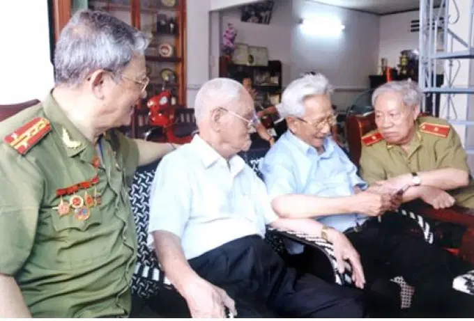 Thiếu tướng Phạm Văn Lai (ngoài cùng, bên phải) thăm đồng đội ở Kiên Giang. Ảnh nhân vật cung cấp