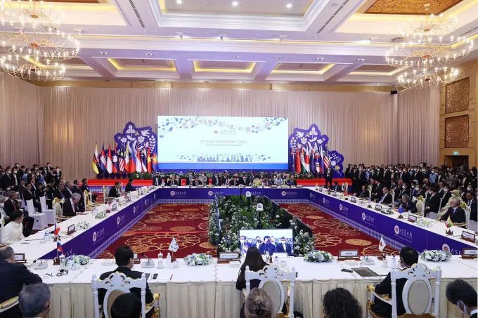 Sáng 13/11, tại Phnom Penh, Campuchia, Thủ tướng Phạm Minh Chính dự Hội nghị Cấp cao ĐÔNG Á (EAS) lần thứ 17 cùng lãnh đạo các nước ASEAN và các đối tác Trung Quốc, Nhật Bản, Hàn Quốc, Úc, New Zealand, Ấn Độ, Nga, Mỹ và Tổng Thư ký ASEAN.