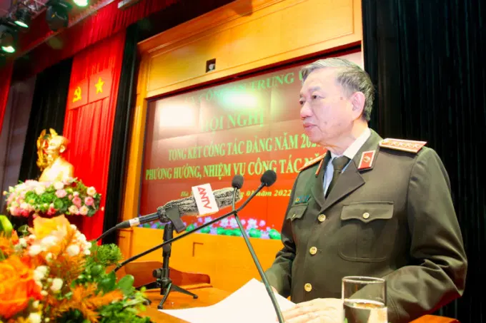 Bộ trưởng Tô Lâm tin tưởng, Đảng bộ Công an Trung ương và lực lượng CAND tiếp tục đoàn kết một lòng, phấn đấu hoàn thành thắng lợi mục tiêu, nhiệm vụ công tác năm 2022; giữ vững và xây dựng hình ảnh người cán bộ Công an thân thiện, nhân văn, vì Nhân dân phục vụ, chỉ biết còn Đảng là còn mình.