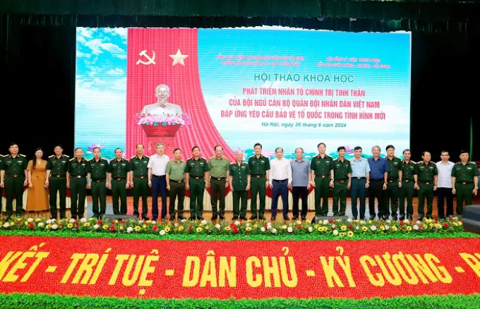 Ngày 26/6/2024, tại Hà Nội, Trường Sĩ quan Chính trị và Cục Tuyên huấn (Tổng cục Chính trị Quân đội nhân dân Việt Nam) phối hợp với Tiểu ban Quốc phòng - An ninh - Đối ngoại (Hội đồng Lý luận Trung ương) tổ chức Hội thảo khoa học “Phát triển nhân tố chính trị tinh thần của đội ngũ cán bộ Quân đội nhân dân Việt Nam đáp ứng yêu cầu bảo vệ Tổ quốc trong tình hình mới”.