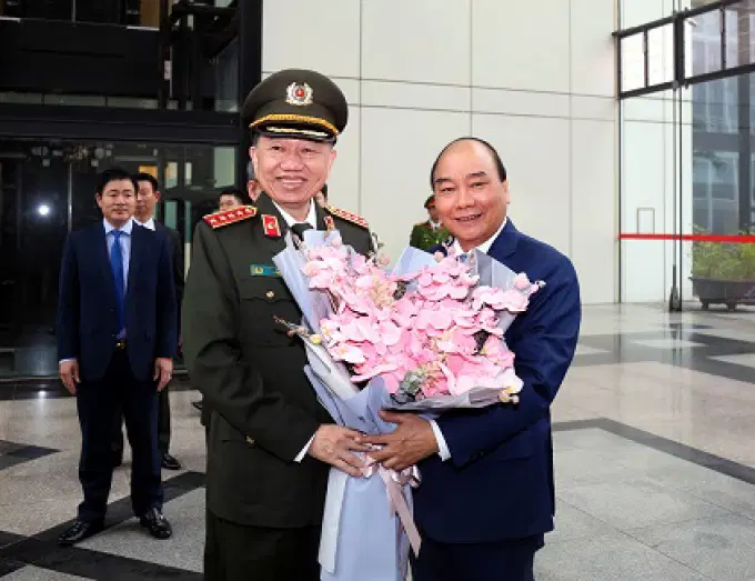 Bộ trưởng Tô Lâm tặng hoa chúc mừng Thủ tướng Chính phủ Nguyễn Xuân Phúc